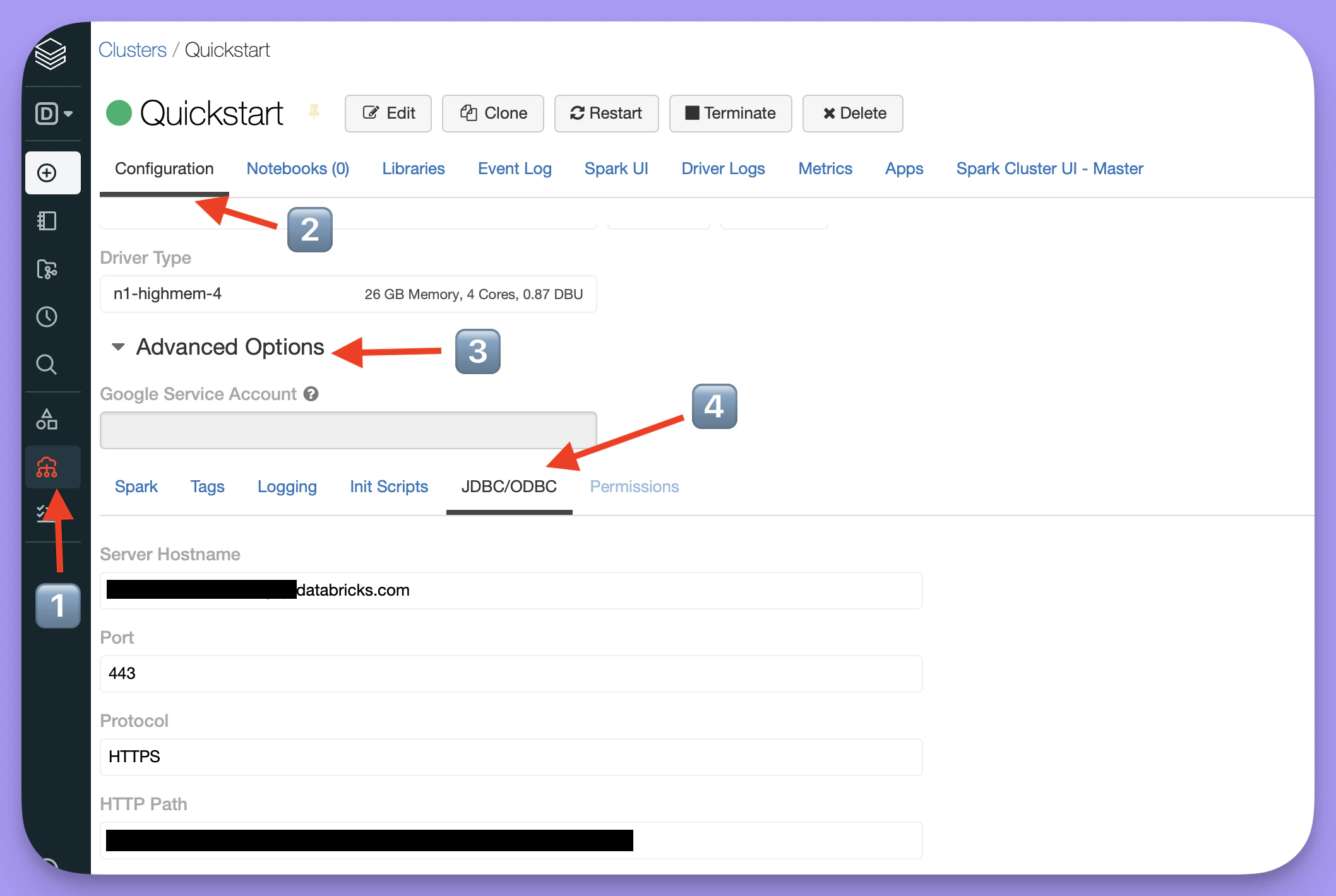 The credentials needed to connect to your cluster can be found in the ODBC options in your databricks account:-