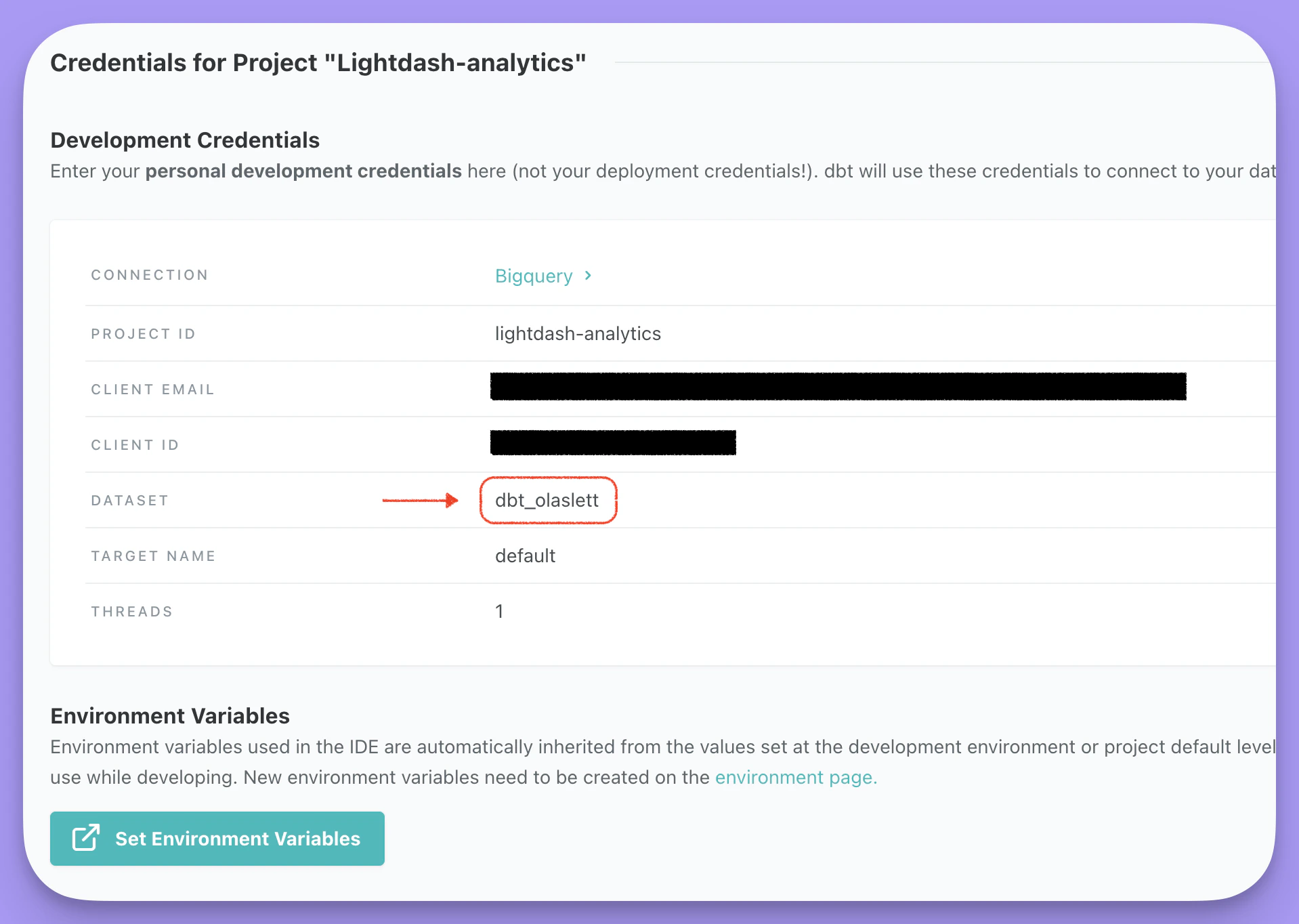 id and pop it into the project field in the Warehouse Connection form in Lightdash.