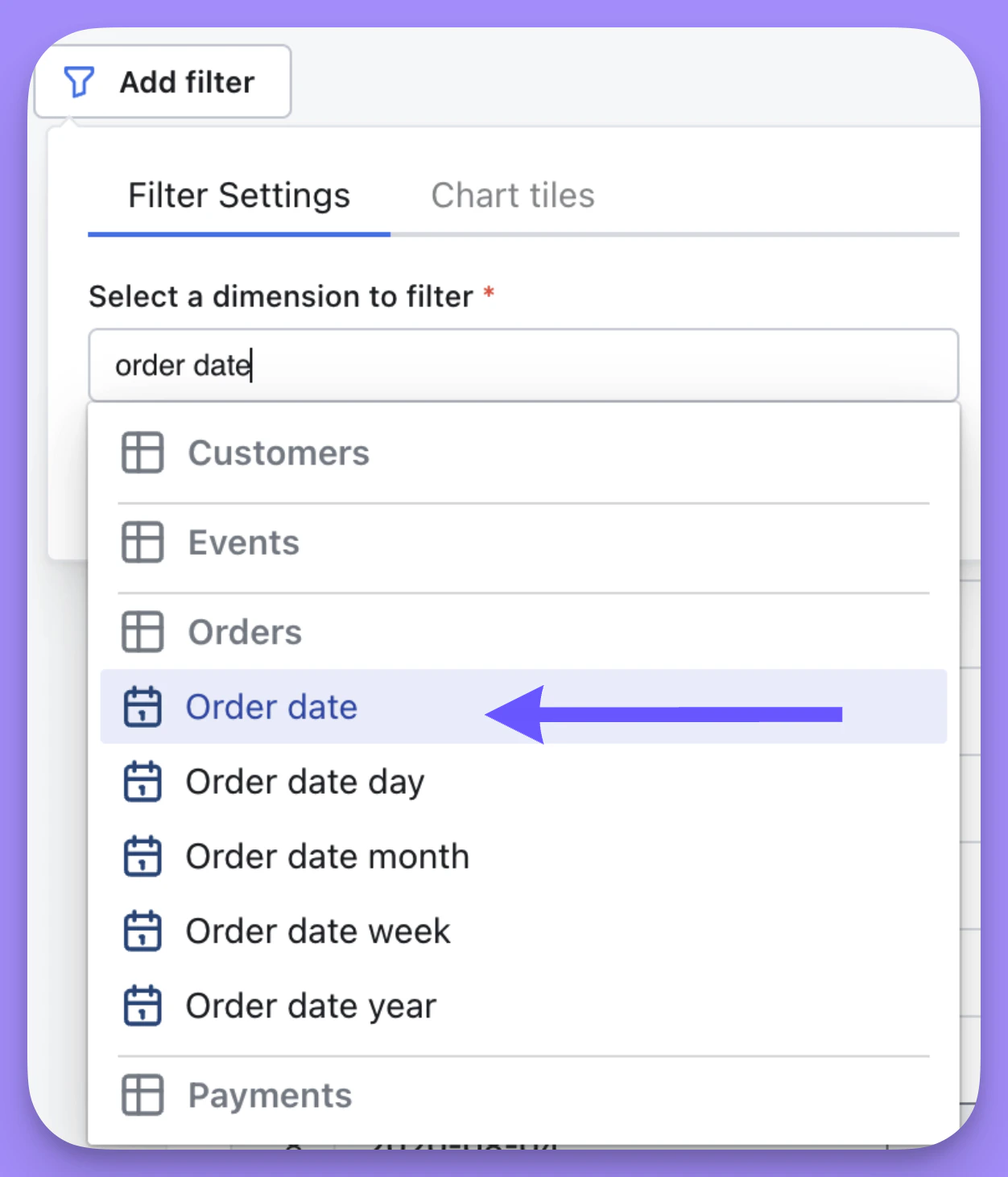 Adding filters to your dashboard