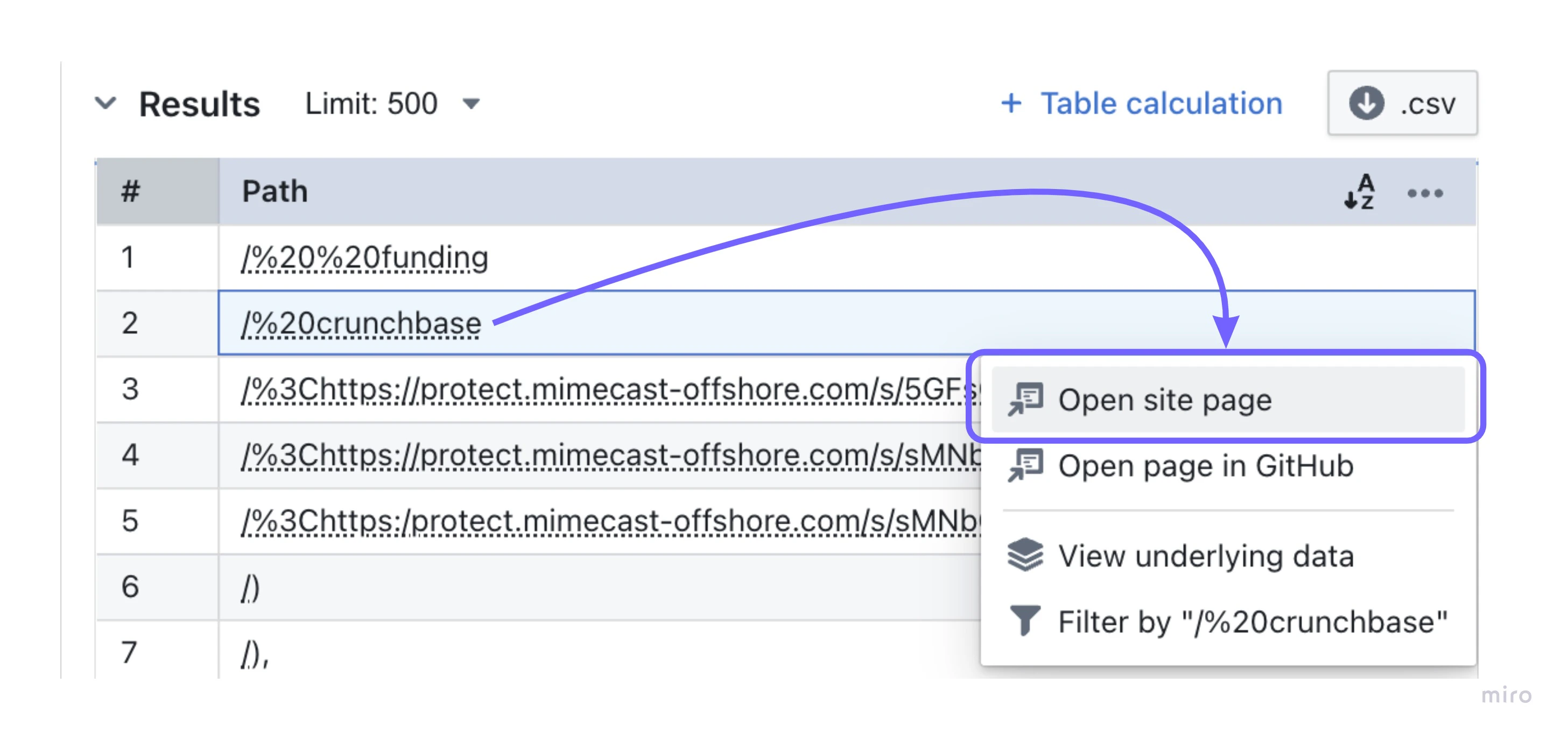 richText take effect, switch the chart type to Table.richText is supported on both dimensions and metrics. It accepts Markdown, inline HTML, and LiquidJS templating. HTML is sanitized with a GitHub-safe allowlist that permits inline style attributes but strips <script>, <iframe>, and event handlers (e.g. onclick). External links automatically open in a new tab.
